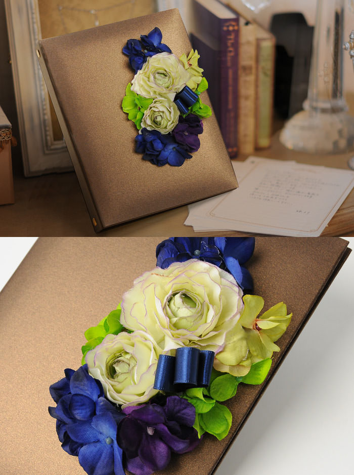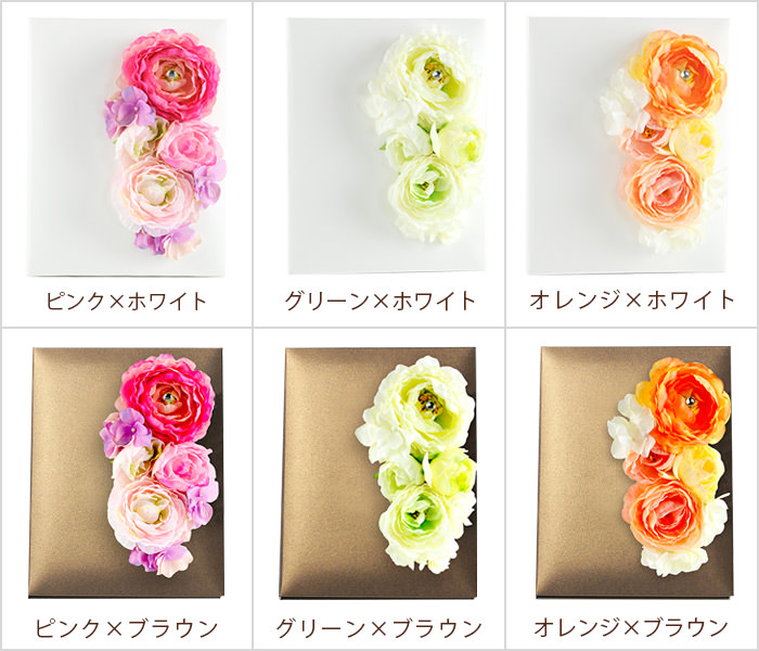 手紙+感謝状+アルバムを一冊のバインダーにセットして、両親プレゼントとして活用できるスグレモノ。普通の便箋よりも、こんなお花が付いたカバーを持って朗読する姿は可憐で、写真映りも最高間違いなしです。カバーをホワイトorブラウンから、お花はピンク、グリーン、オレンジの3色から組み合わせを選んでオーダー。