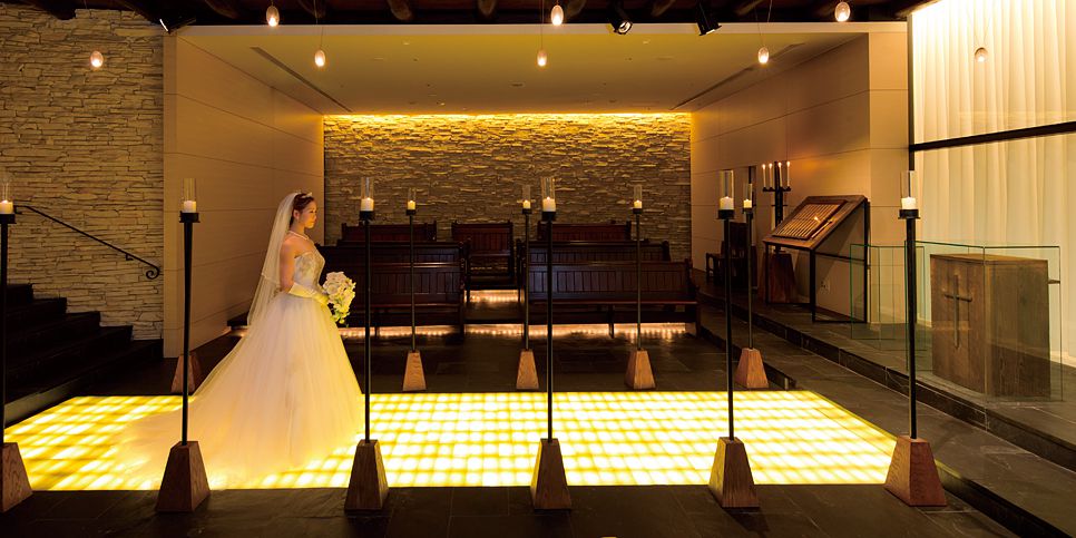 - チャペルの雰囲気 対面式でバージンロードが光るところが気にいった