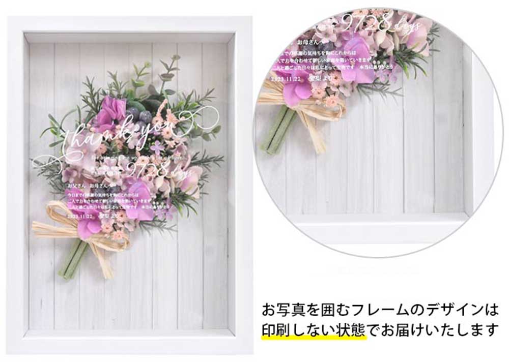 お写真を添えられるのが魅力的な感謝ボードだけど、お写真なしの状態も可能。オーダー時に伝えれば、写真枠を印刷していないデザインで製作してもらえます。