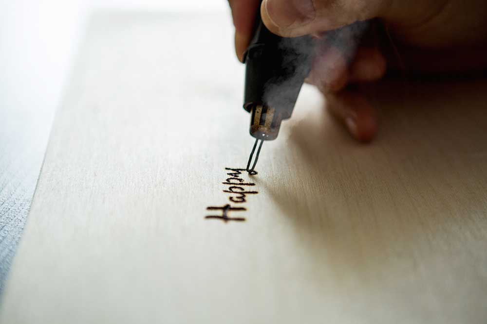 ウッドボードに絵や模様、文字などを施す時、ペイントや印刷、彫刻など色々な技法があると思いますが、今回注目したいのは「Pyrography(パイログラフィー)」という技法。いわゆる、「焼き絵」や「ウッドバーニング」と呼ばれる技法です。