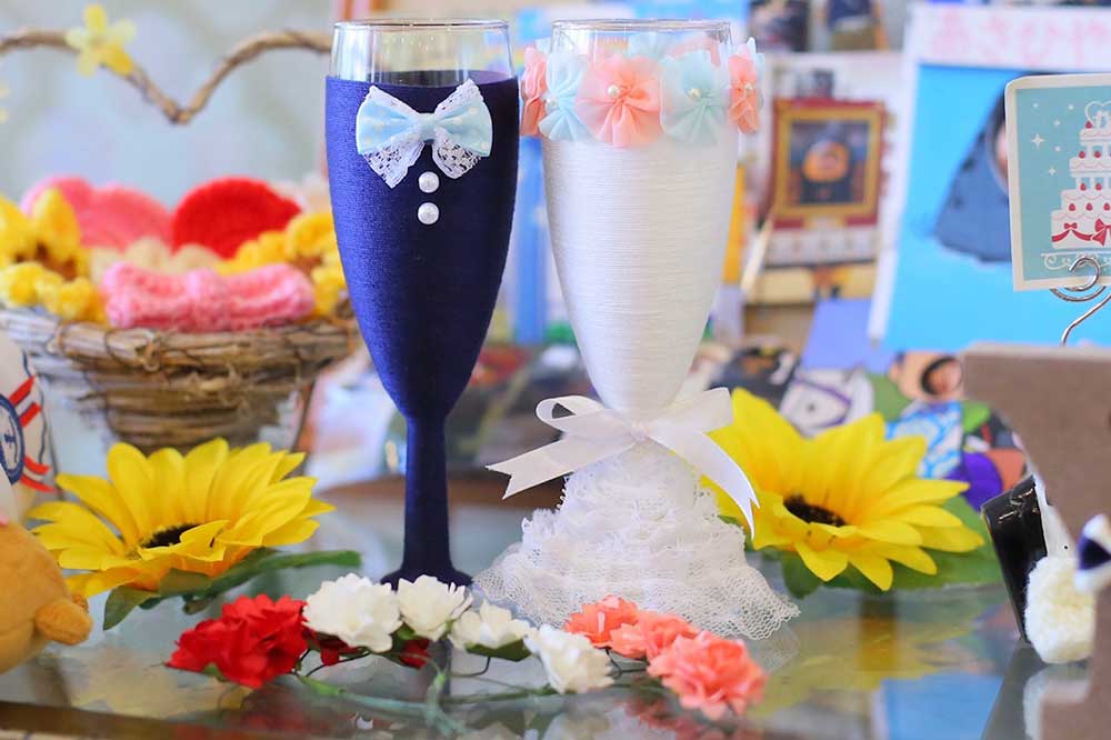 かぎ針編みの小物は、お友達も協力してくれたそう♡グラスドレスやウェルカムドールもお友達の手作り♡♡手作り上手なお友達は、結婚式準備の強い味方ですね!