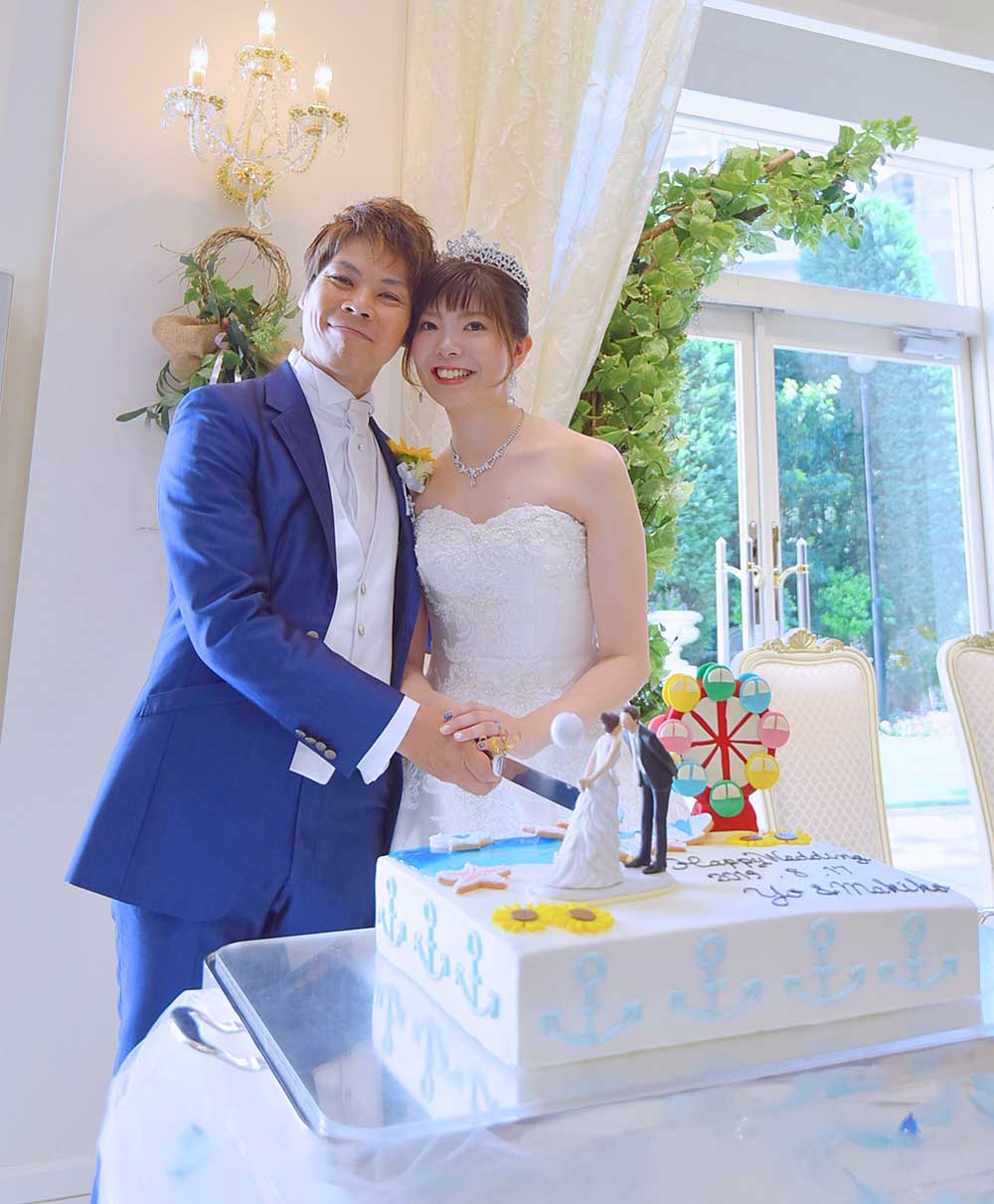 テーマは「夏」だったので、向日葵や海、明るい印象を目指しました、というお二人。たくさんの向日葵を使った装花や、新郎様のブルーのタキシード、新婦様はネイルにもブルーを入れて、細やかな部分まで夏らしさを意識!とっても素敵です♡