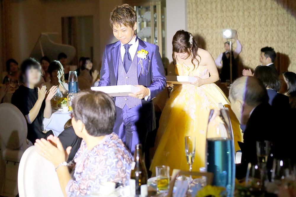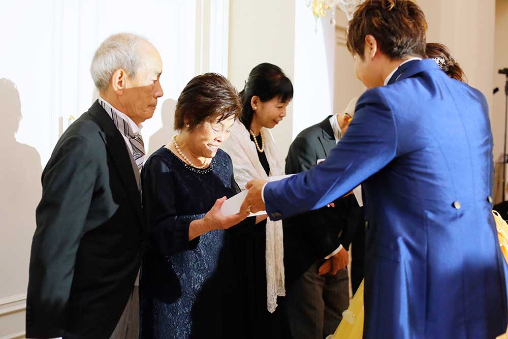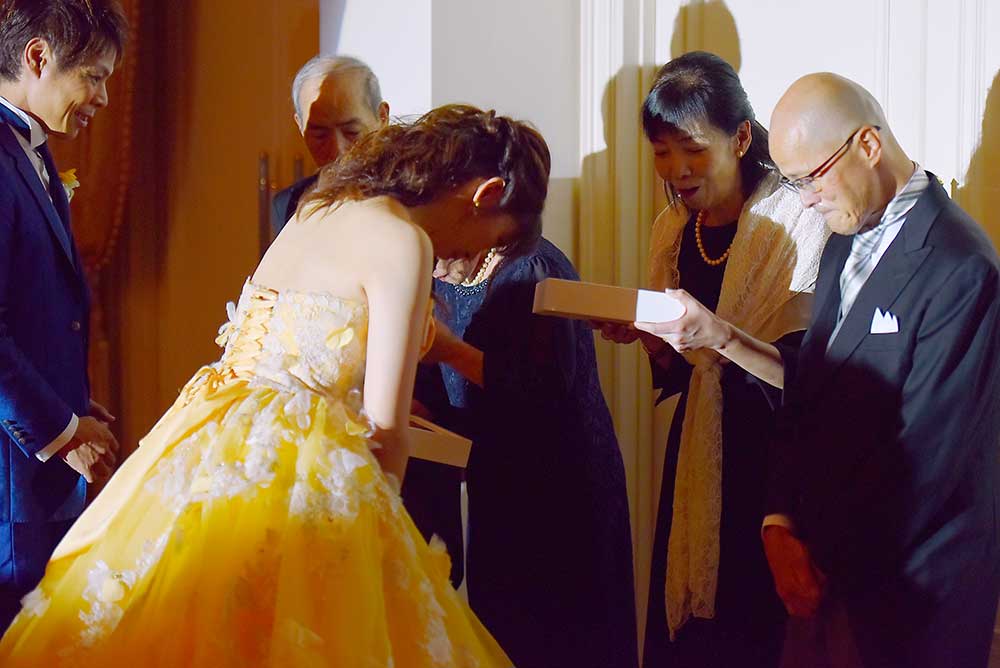 二人からの贈呈シーン… お父さまお母さまの感動されている表情がとても印象的です。