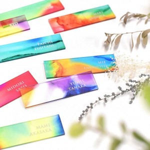 結婚式小物の通販サイト「ファルベ」では、ちょっとしたアレンジや、お二人の理想・アイデアをカタチにするオーダーメイド品の作成・ご相談も承っています。紙タイプの席札デザインを応用し、素材を変えてアクリル席札としてオーダー、といったことも可能なので、お気軽にご相談くださいね。(お問合せはコチラから)