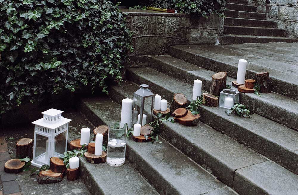高砂やゲストテーブルにたくさんのキャンドルを飾れば、オシャレで幻想的な雰囲気にも。ただし、ナチュラル要素は足し算したいので、キャンドルスタンドやコースターなどに、木材を取り入れてみて。ちょっとしたことですが、ナチュラルクリスマスを盛り上げる素敵なアイテムになりますよ。