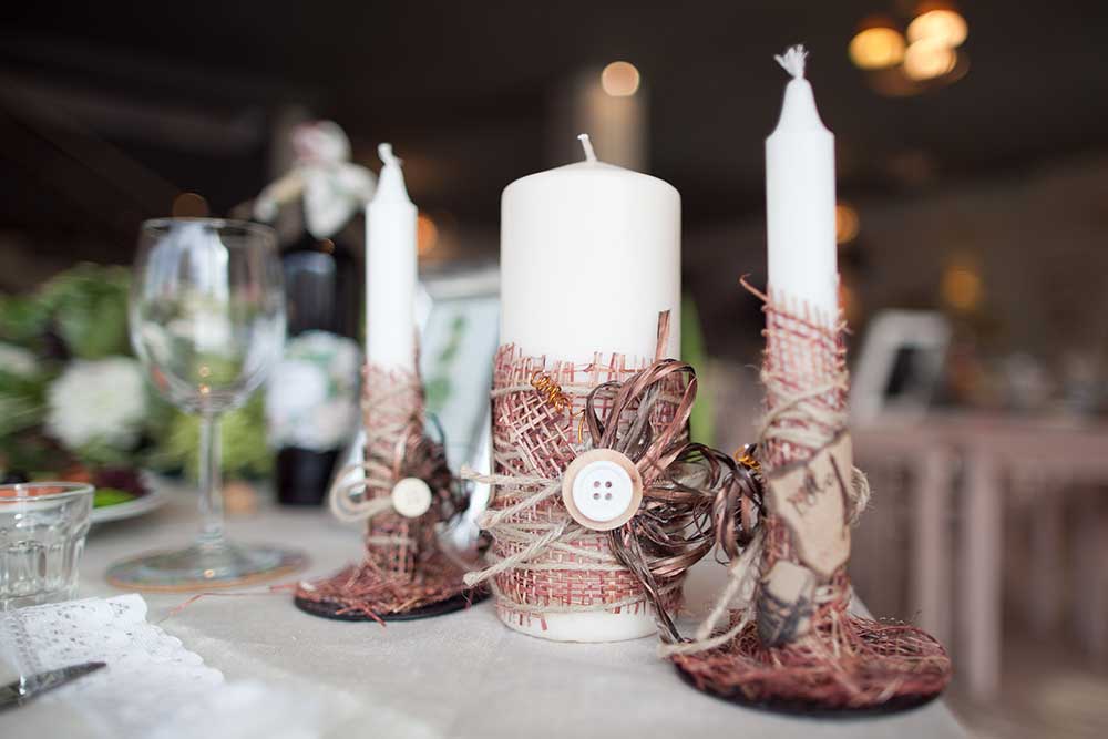 大き目のキャンドルには、麻素材の生地や紐を巻き付けてデコレーションするのも雰囲気が出てGOOD!