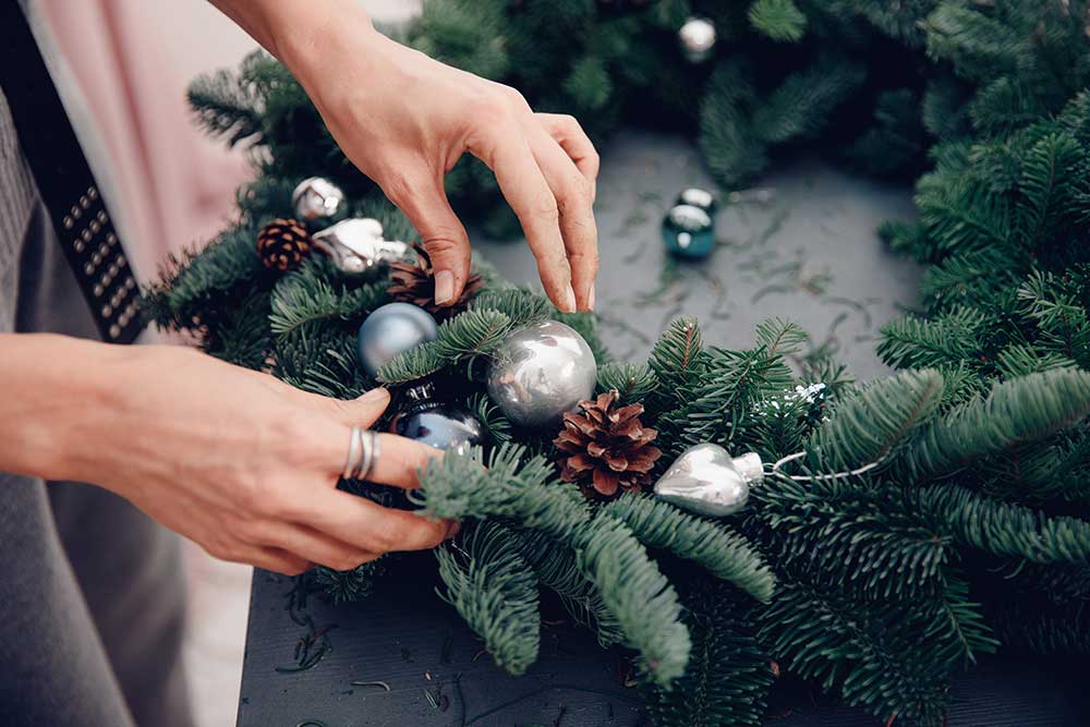 クリスマスの雰囲気が見た目で分かりやすいものと言えば、もみの葉・ひいらぎ・松ぼっくりなどクリスマスモチーフによく使われている植物をアレンジに使うこと。赤やグリーンをメインに使えばクリスマスっぽくなりますが、ラスティックな雰囲気を重視したいなら、あくまでシンプルに、ブラウンやグリーンをメインに据えて、赤は入れずにコーデしてみるととシックで大人っぽくなりますよ。