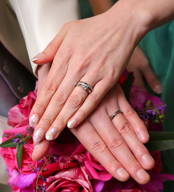 結婚指輪は、夫婦でお揃いのアイテム。そして一番そばでいつも相手を感じていられる究極のアイテムです。仲良くお揃いにしてもいいし、まったくのお揃いでなくてもそれぞれの個性を象徴しつつもどこか繋がっている”お揃い感”も素敵。