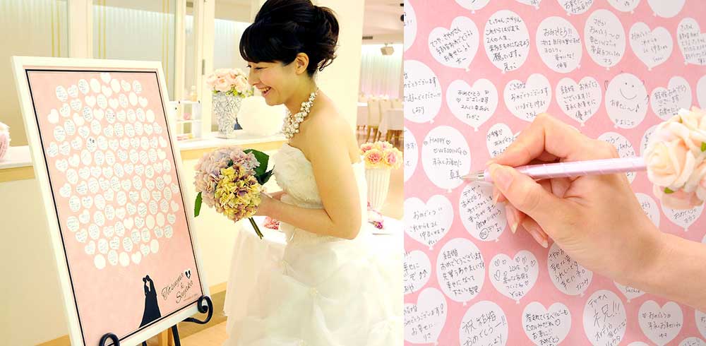 ウェルカムボードや結婚証明書など、ゲストからのサインなどを集めて完成させるアイテムは、当日の思い出そのままに残せる宝物に。
