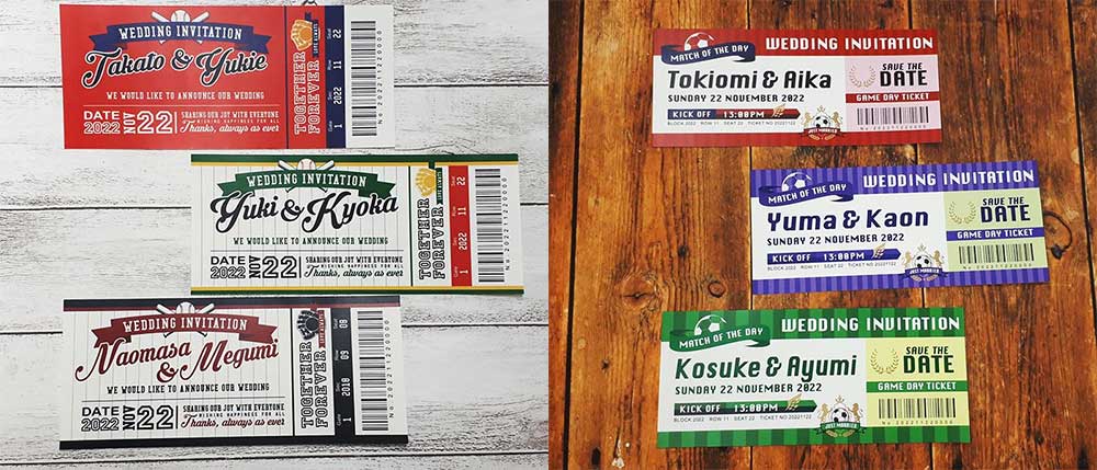こちらもオリジナルでスポーツチケット風にアレンジできるみたい!しかも好きなチームカラーを指定して作成できたり、要望に応じてアレンジも加えてもらえるみたいなので、スポーツファンにはたまらないペーパーアイテムが出来上がりそうな予感♡♡こちらも気になる方はファルベに問い合わせを。