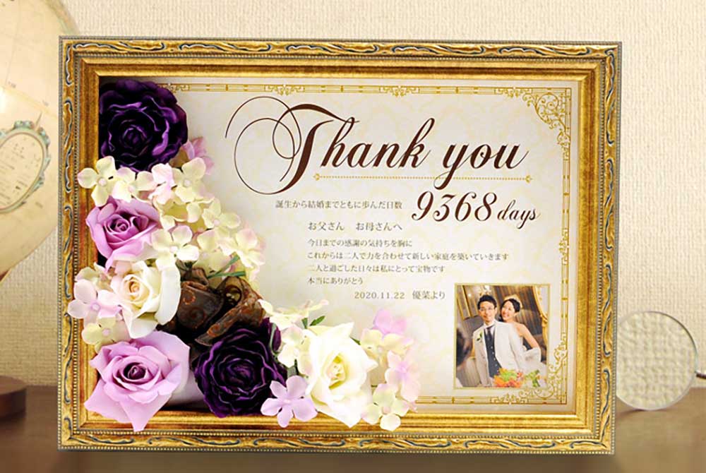 思い出の写真を使ったギフトを両親へ送って、感謝の気持ちを伝えるのは、卒花さんもおすすめの演出。感謝状タイプのものやフォトフレーム、時計と写真が一緒になった実用的なものまで、さまざまなバリエーションがあります。家族の思い出と一緒に、結婚式の写真もプラスしてプレゼントするのも素敵です。結婚式の準備に行き詰まったら、思い出の写真を見ながらちょっぴり休憩するのもアリ。素敵なアイデアが浮かぶこともあります♡