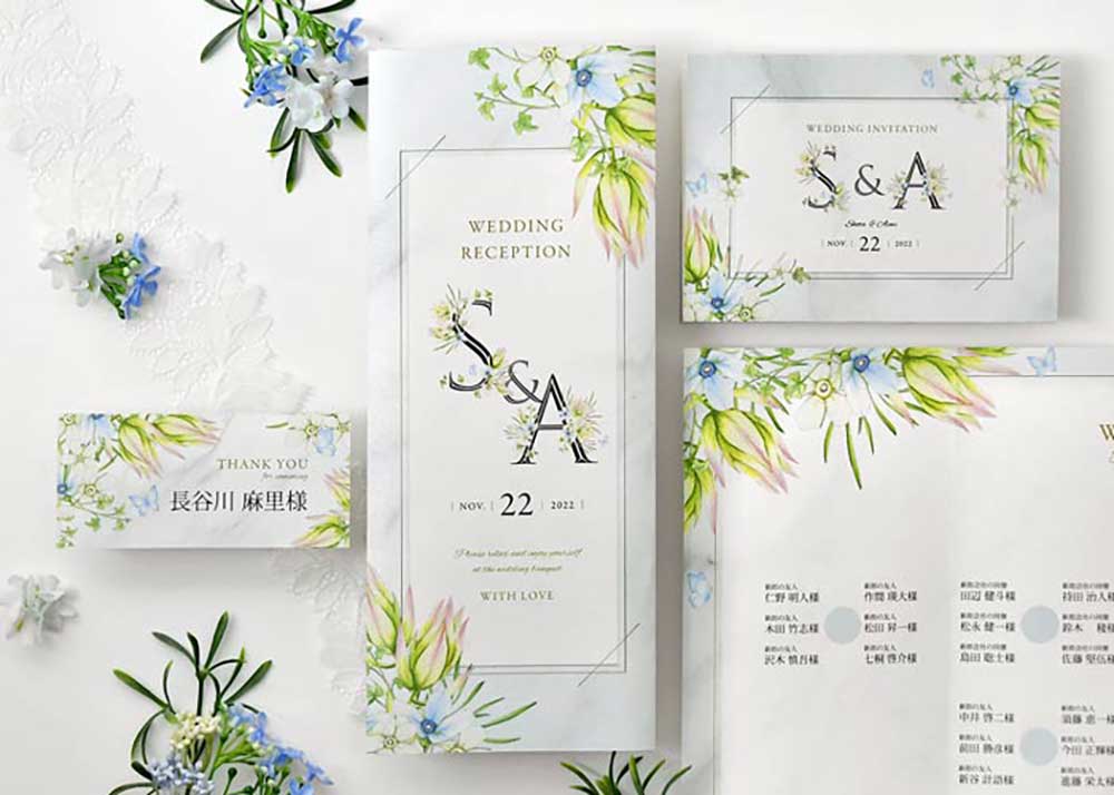 参考:「イニシャルフラワー」招待状完成品オーダー席次表オーダー席札オーダー