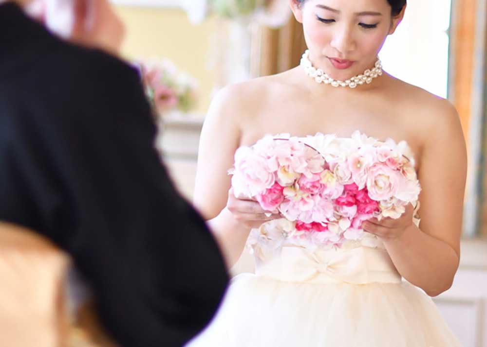 こちらはファルベのオリジナルアイテムで、直筆のお手紙をそのままウッドボードにレーザー彫刻してもらえるギフトアイテム。しかもアーティフィシャルフラワーで可愛くデコレーションしてあって、花嫁の朗読姿まで美しく演出してくれるという写真映えバッチリのアイテム!直筆のお手紙を彫刻してもらえるというところがポイント高いですよね!