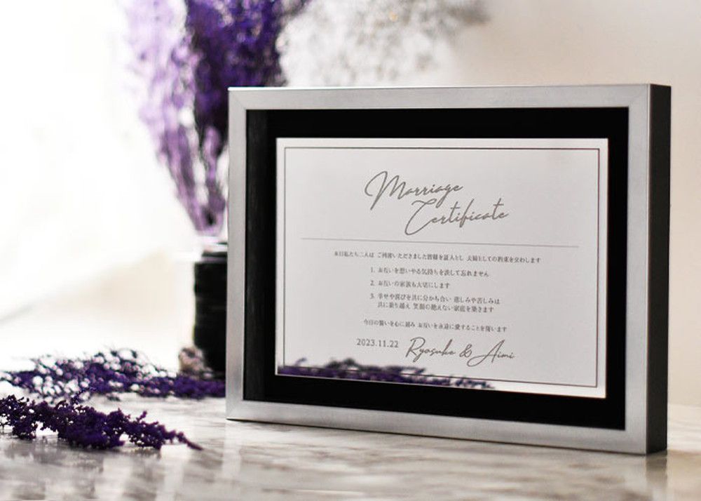 こんな風に見た目を重視した、新居にも飾りたくなるような結婚証明書もありですよね。
