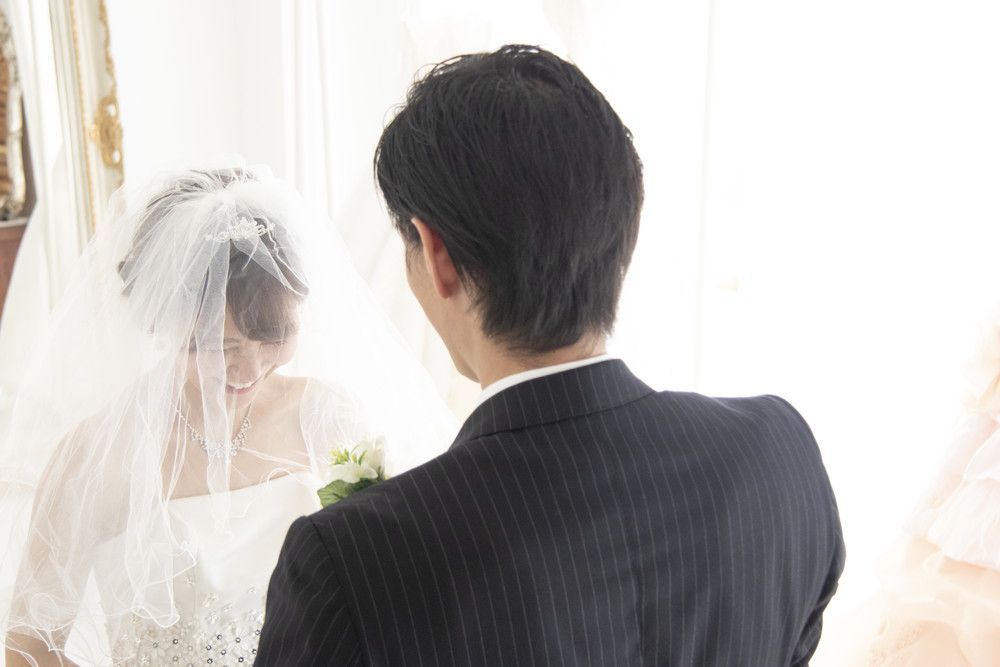 純白のウェディングドレス姿の花嫁。その姿に思わず惚れ直したという新郎様も多いです。ウェディングドレスで行うキリスト教式や人前式の場合、「フェイスベールを身につける」という花嫁様も多いでしょう。