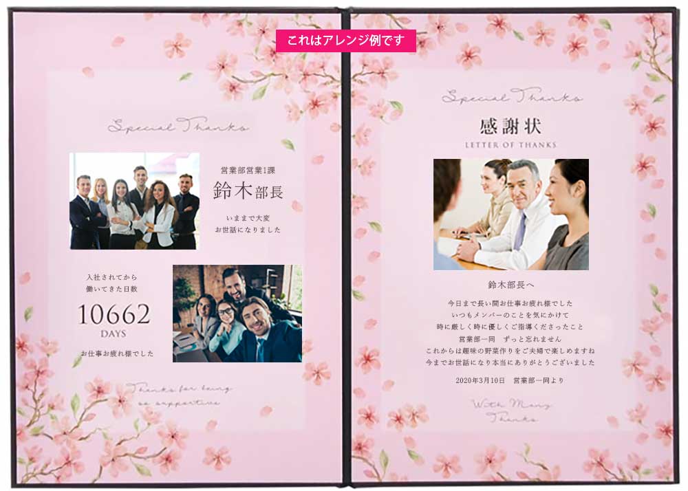 贈る相手に合わせて入れる内容を変更することで、結婚式で使う両親贈呈品としてだけではなく、違う目的での使用も可能となります。例えば、「長寿のお祝いギフト」「退職される方への記念品」のような記念日ギフトにアレンジ希望される方が多いです。お写真が入るものも多いので、記念にも残りますしね♡