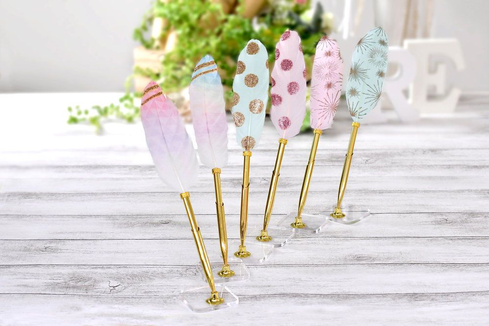 ちなみに、せっかくおしゃれなゲストブックを用意するなら、受付用のペンにもこだわってみるのがおすすめです。結婚式らしい、かわいいデザインのものなどもいろいろと販売されています。