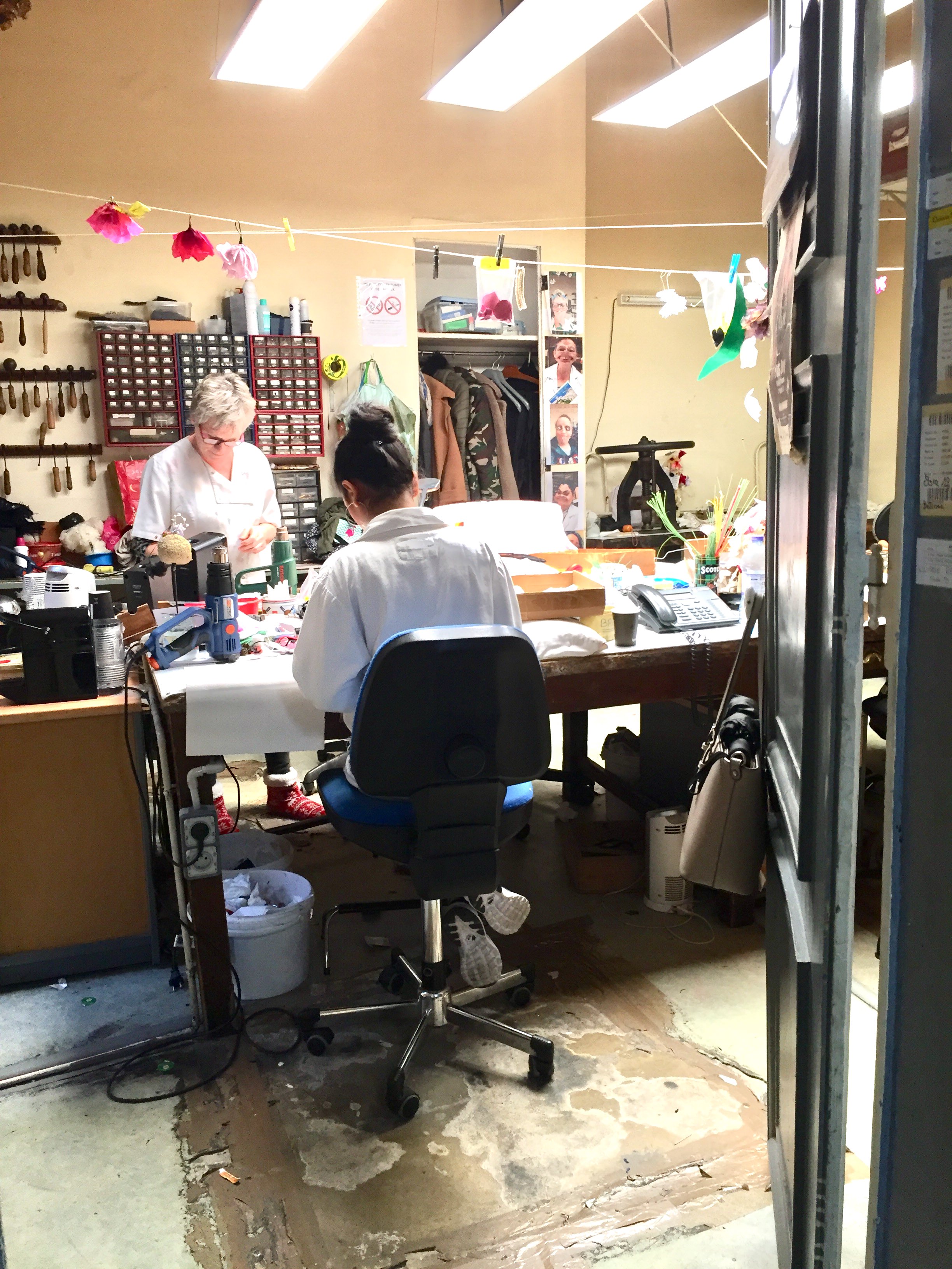 コサージュ職人さんのアトリエでは、職人さん手作りのコサージュを1つからお求めになることができます。こちらはアトリエ風景。