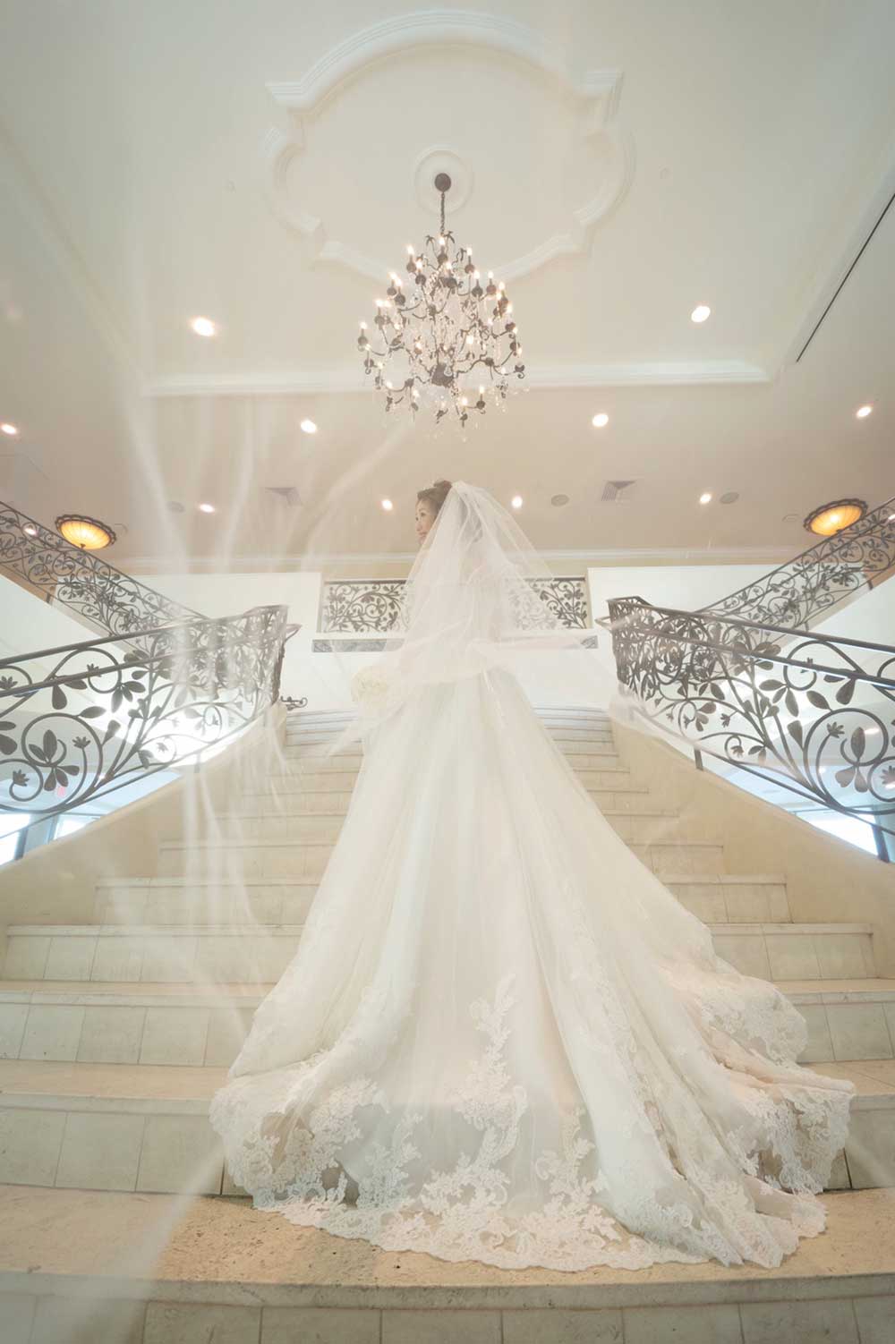 お二人が結婚式をされたのは、ワイキキから車で約10分の場所にある「ザ・テラス バイ・ザ・シー(The Terrace By The Sea)」。海・ダイヤモンドヘッド・街並みを一望できる最高のロケーションに佇む「カウイチャペル」は、天井高8mオーシャンビューを映す窓はなんと高さ7mという圧倒的な存在感。そのほか、写真映えが叶う大階段をはじめ、回廊にエントランス、花々が咲き誇るフラワーガーデンなど、充実の設備も魅力的。素晴らしいロケーションと最高の設備を備えた、海外ウェディングで人気の会場です。