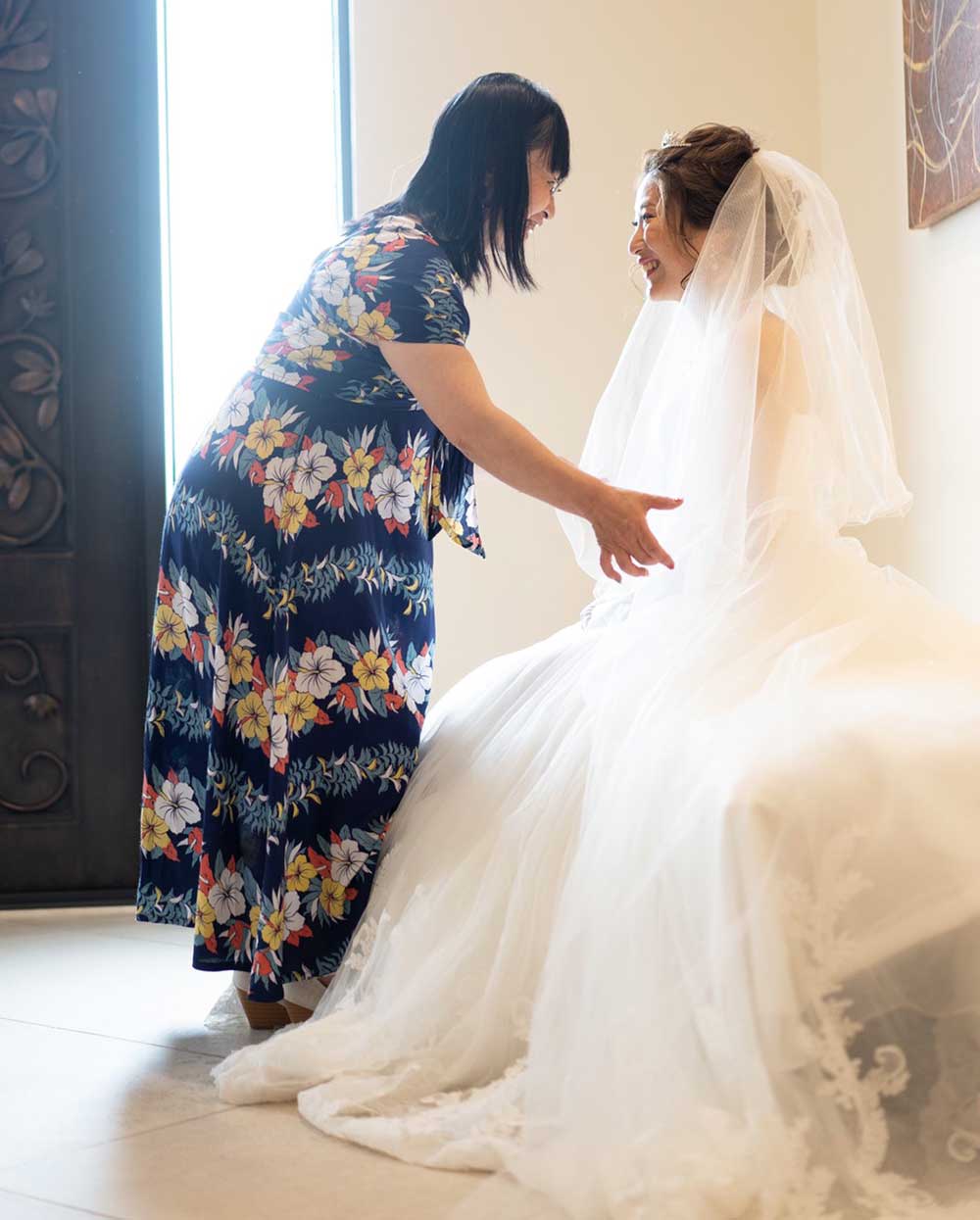 5歳の甥っ子と2歳の姪っ子にリングボーイとリングガールをお願いしていたのですが、直前になって姪っ子が大号泣。お菓子で釣ってなんとか結婚指輪を運んでくれたおかげで、とても場が和みました。パーティの終盤に両親への手紙を読んだ際は、司会をお願いしていた現地スタッフの方も涙ぐんでいた姿にアットホームさと心が温かくなったことがとても印象に残っています。とにかく現地スタッフのお気遣いは最高でした!