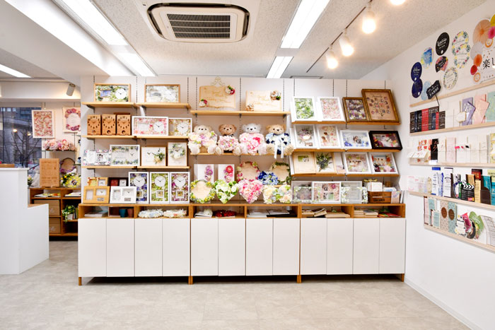 エレベーターを3階で降りると、オシャレなウェディングアイテムでいっぱいの空間が広がっています。