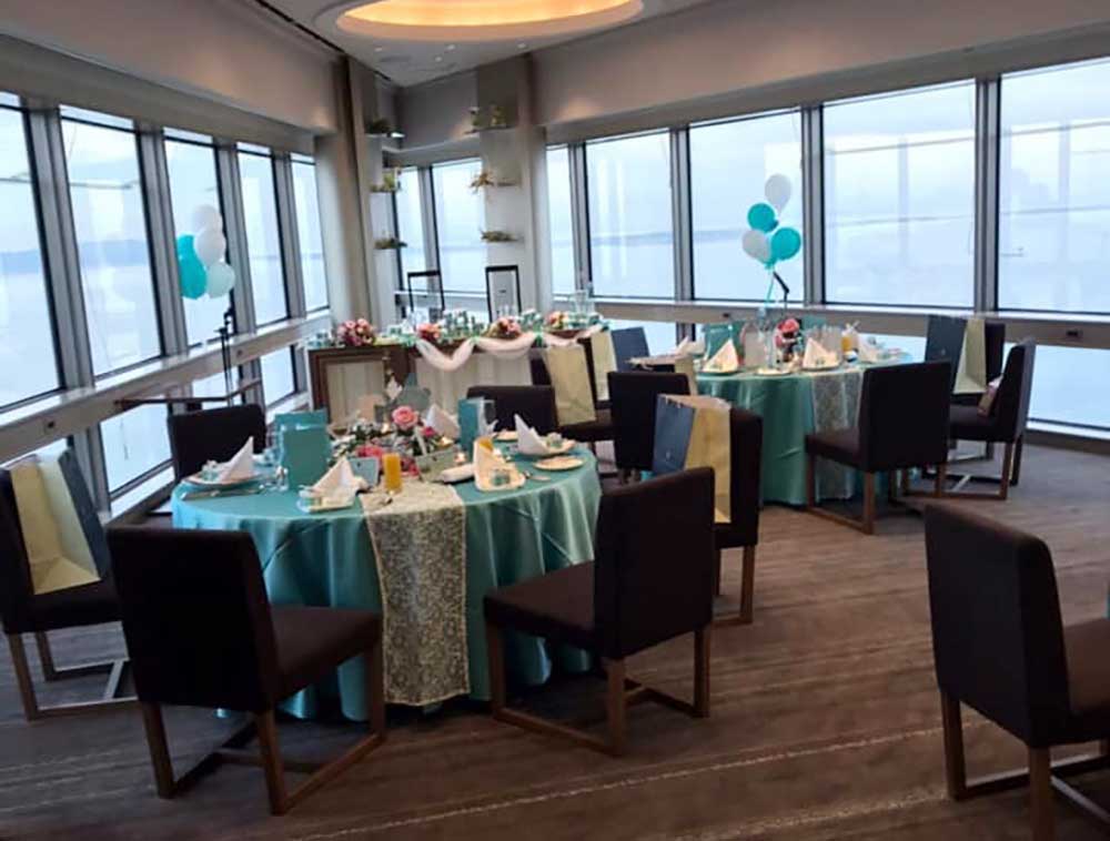 高砂は、花よりティファニーブルーの物をたくさん置く事で華やかになりました。