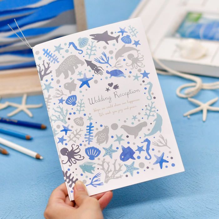 招待状や席次表、席札などのペーパーアイテムは、せっかくだからマリンスタイルで揃えるのがおすすめ。涼し気な招待状で、ゲストを夏の海へとご招待しましょう。