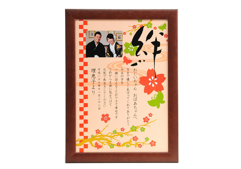 新郎新婦の写真とメッセージが入れられる感謝状は、祖父母へのギフトの定番です。写真を添えることでいつでも顔を見て思い出してもらえます。メッセージの文字が大きいものもあるため、祖父母でも読みやすくおすすめ。お部屋にも馴染みやすいデザインやサイズを選ぶと、飾ってもらいやすいですよ。