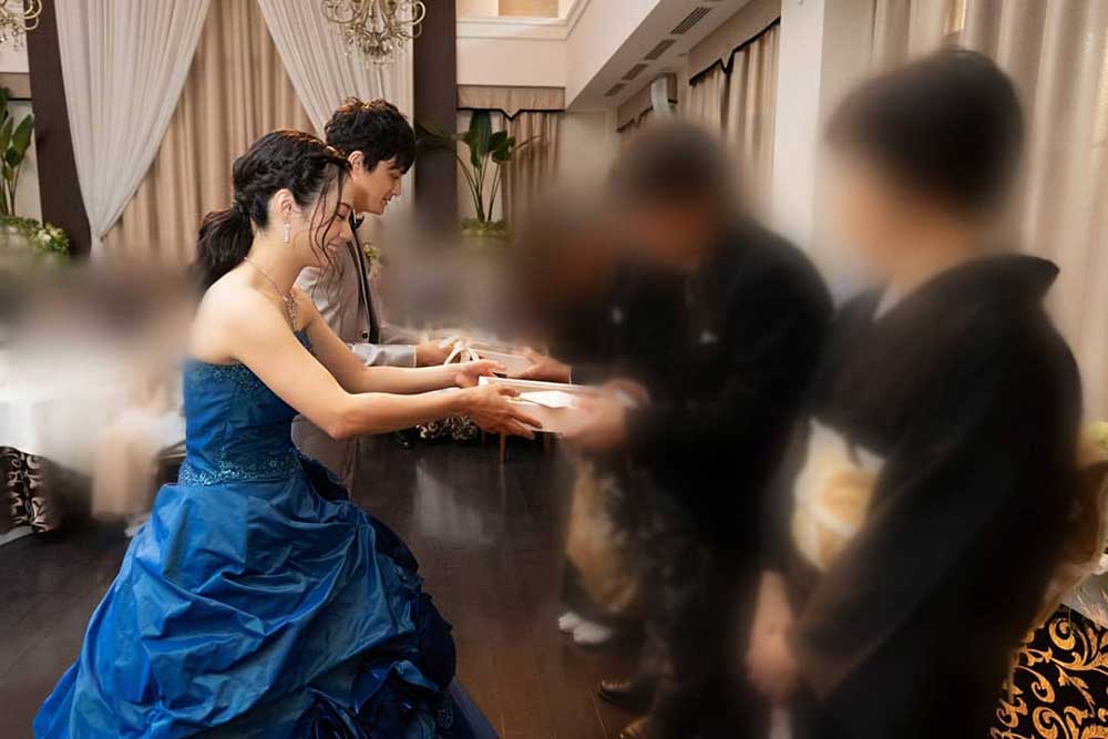 この演出の後は、特に余興などは入れずにゲストの方々と歓談という形をとられたそう。その間にゲストの方が写真を撮りに来てくださったり、お話をしに来てくださったりしたそうで、ゲストとゆっくりお時間を過ごすことができたようですよ。