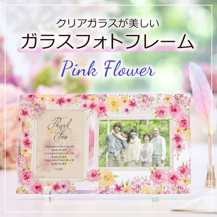 美しいクリアガラスに心癒されるお花をちりばめたガラスのフォトフレーム。透明感あふれるガラスに華やかなデザインをUV印刷でほどこしました。ガラスは耐久性にもすぐれていて何年たってもピカピカのまま。インテリアとして飾っていただけるよう作られたギフトです。片側にはメッセージを入れてお届けします。メッセージ部分もあとでお写真に差し替え可能!