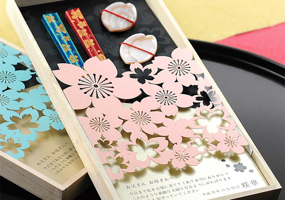 親によっては、「なるべくものは増やしたくない」というタイプの人もいるでしょう。そのような場合は、場所を取らず、かつ実用性もある夫婦箸が最近は人気のようです。両親ギフト用の夫婦箸として、名入れの桐箱に入った、ちょっと高級な夫婦箸なども販売されています。メッセージカードや手紙をつけてプレゼントすれば、桐箱が、メッセージカードなどを保存するのにぴったりの入れ物にもなるでしょう。記念の贈り物はしたいけれど、何を贈れば分からないという場合も、箸なら間違いなく使ってもらえるはずですよ。