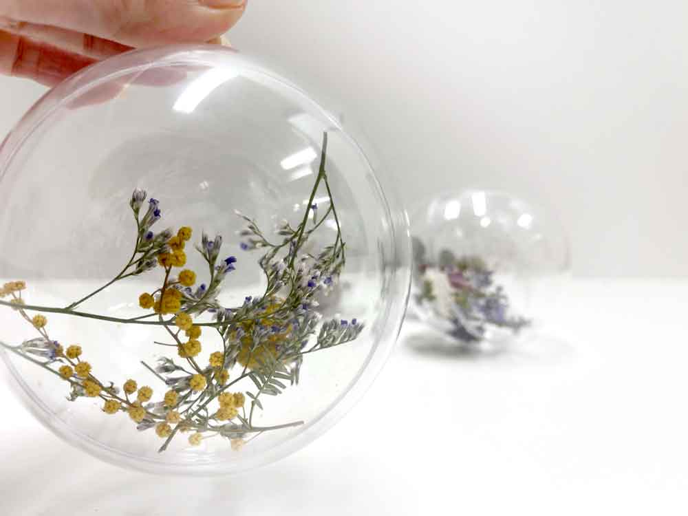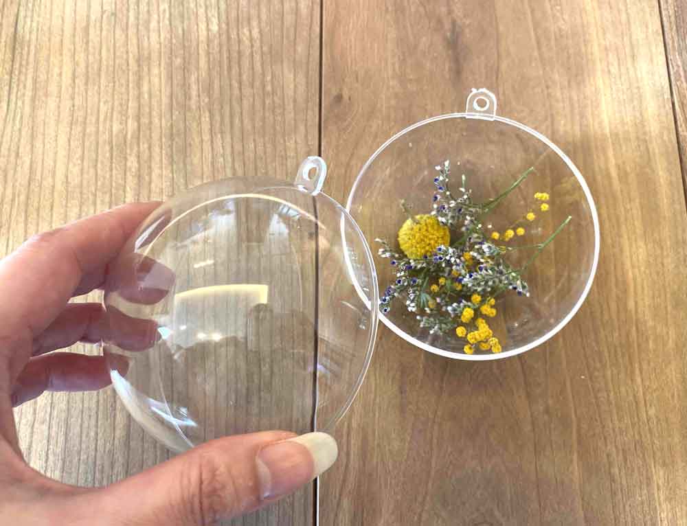 カプセルボールが届いたら、あけて中にドライフラワーを入れていきます。