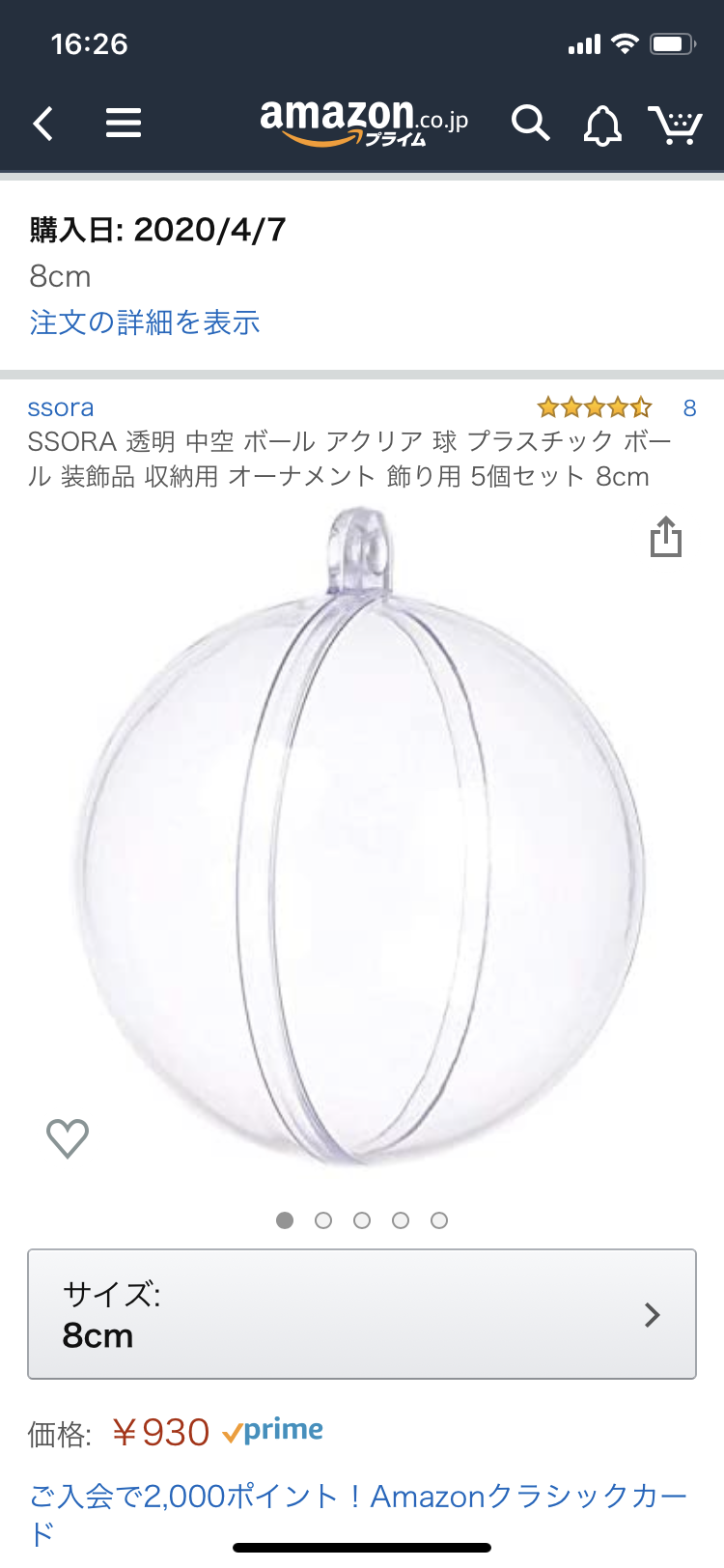 透明のボールはオーナメントとして販売しているこちらを購入。