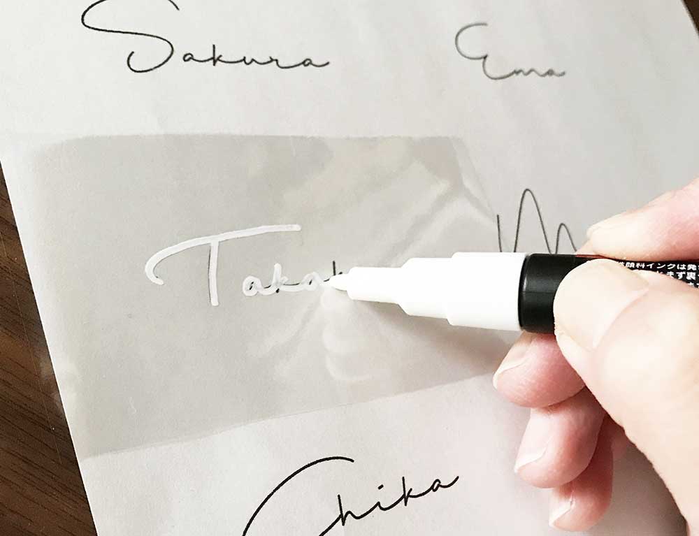 あと最近では、身近なアイテムを使ってDIYできる!と人気なのが、「プラ板」を使ったアイデア。小学生時代にみなさん一度は経験があるのでは?100円ショップなどでも気軽に手に入る材料で、オシャレにかわいくできると人気!チャレンジしようと思う方は、時間のある時にサンプル作りに挑戦してもいいですね♪焼くと四分の一程度に縮むので、サイズ感など確かめてみては?透明シートタイプなら、パソコンで印刷した文字を見本にして、油性ペンでなぞって書けば、筆記体の英語フォントも上手に書けますよ♪