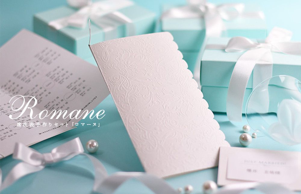 席次表などのペ-パーアイテムは、会場の雰囲気を盛り上げてくれる重要アイテム。レースのような柄があしらわれた、高級感のあるデザインをチョイスして、プリンセスムードを盛り上げてみてください♡席次表やメニュー表など、すべて同じデザインでそろえるのもおすすめ!