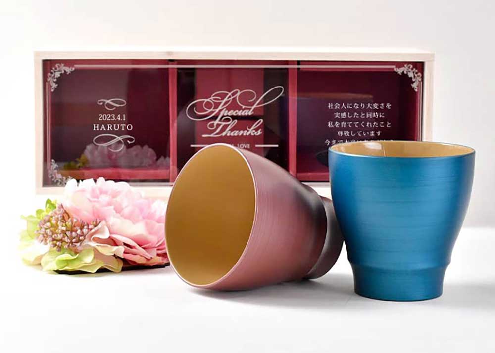 感謝状みたいな飾れるタイプもいいけど、もっと実用的なものをプレゼントしたい!と言う方にはコチラがオススメだそう。パッケージになっている桐箱に感謝メッセージが入る仕様になっています。箱も記念に残したくなっちゃいますね♡