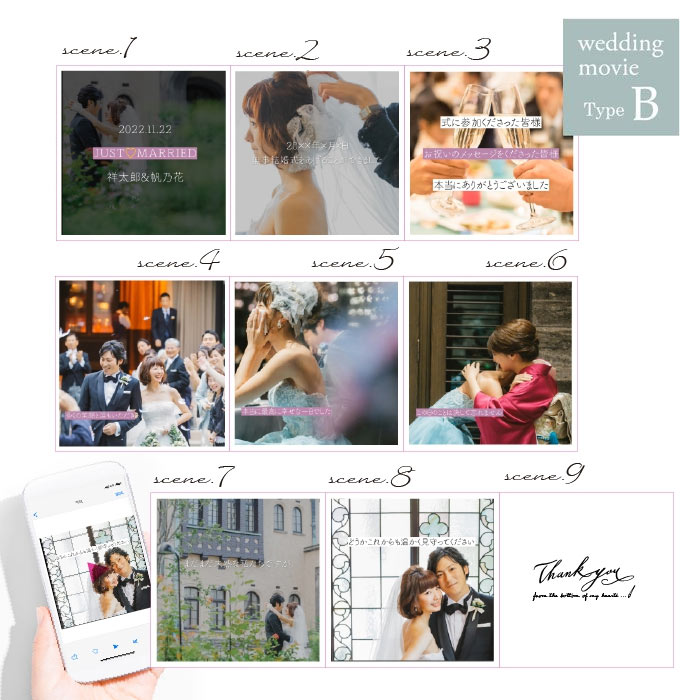 お友達や同僚などには、当日の写真をシェアしたり、感謝の気持ちをメッセージに込めて報告動画を送ってみるのはいかがですか?デジタル世代の方が多いと思いますので、画像や動画の方が喜ばれるかも。写真を加工したり、動画を作成するのが苦手な方は、結婚報告動画を作成してくれるサービスもあるみたいなので、利用してみるといいかも♡
