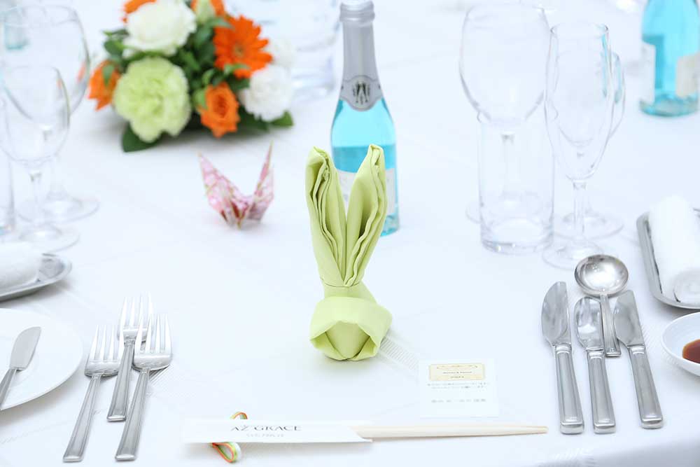 ↓こちらがそのウサギ型に折られたナプキン♡ゲスト席につかれた方が思わず笑顔になっちゃいそうな、かわいいフォルムで癒されます♡♡