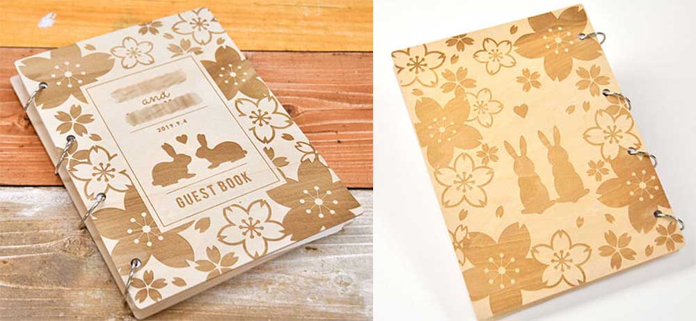 木製のゲストブックにオリジナルで、大好きな桜とそこに仲睦まいうさぎ。どんな時も、この桜のように穏やかでいられますように……と願いをこめた絵を作成していただきました。思っていた以上に素敵な仕上がりで、大変満足してます。