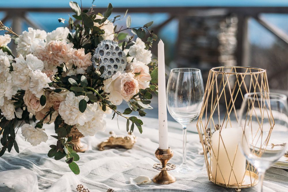 ブーケや装花には、シャビーシックな落ち着いた色合いのお花や、ラスティックな雰囲気の素朴なお花を使うのがシンプル&スタイリッシュさを出すポイント。プロテアなどの大きくて不思議な形をした花序が特徴のワイルドフラワーを使ったものもスタイリッシュさを演出してくれます。