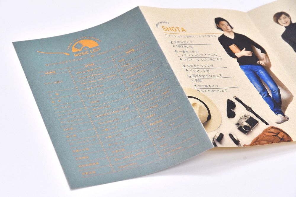 結婚式で配るペーパーアイテム。席次表やプロフィールといった当日ペーパーアイテムはゲストにとって楽しい読み物でもあります。