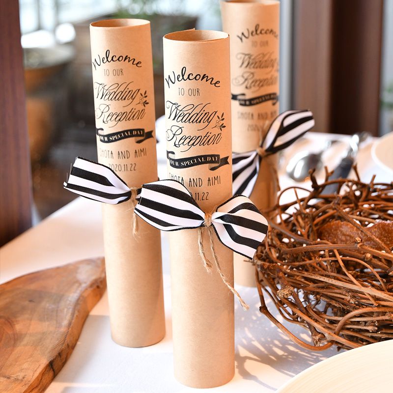 挙式のあとに披露宴や食事会を予定している家族婚なら、席次表も用意しておくのがおすすめ!ゲストに座席位置を知らせる役割を持つアイテムなので、用意したほうが親切な印象になります。「人数が少ないぶん、席次表を作ると余白が目立ちそう…」そんなお悩みの解決には、小さめサイズの席次表や席次ボードの活用が◎。ゲストにとって見やすく、余白も目立ちにくいおすすめの方法です。