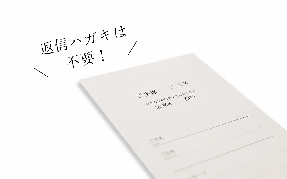 招待状の内容は基本的に同じですが、返信ハガキは不要です。家族婚では事前に出欠確認を取ってから招待状を送ることになるので、日時や場所を知らせることがメインになります。招待状には返信ハガキを省略していることを記しておくとより親切な印象に!招待状発送のタイミングは、出欠確認を事前に取っているため挙式の約1カ月前でOKです。