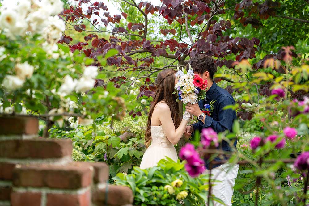 最近はあえてブーケや小物で顔を隠して、キスショットを撮影するのも良く見かけます。キスを見られるのが恥ずかしい…という方も、この方法なら「している風」のかわいいショットが撮影できそう♡プロフィールブックやウェルカムボードなど、オシャレなイメージショットとして他の方にお披露目するアイテムに使う写真に使えて便利です。