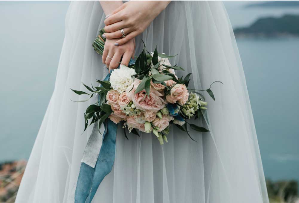 アースカラーにこだわりたいアイテムの一つがドレスとブーケです。ドレスは、オフホワイトやアイボリー、淡いブルーなどの少しくすんだカラーがオシャレ。ブーケはグリーンを基調にブルーやペールオレンジなどのお花をポイントに入れても引き締まります。
