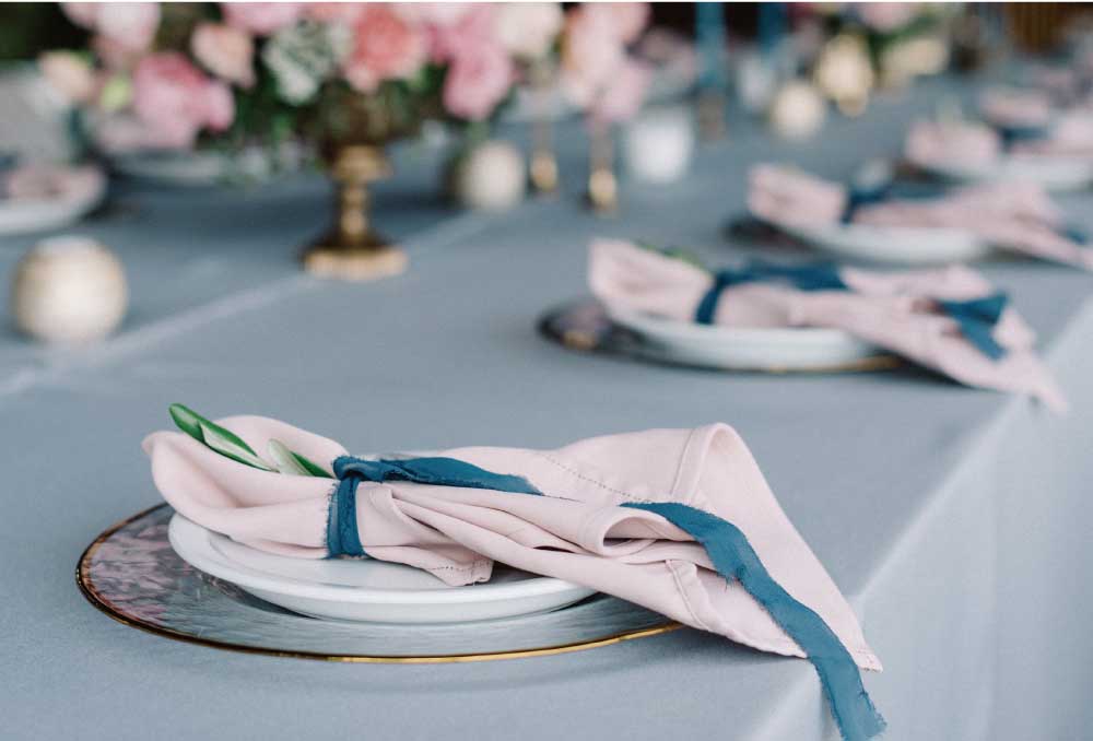 アースカラーをテーマにしたいのであれば、会場のイメージを決定する装花やテーブルコーディネートは欠かせない部分です。中でもどの色をメインで持ってきたいかを必ず決めて、色合いがごちゃつかないように気をつけましょう。色が欲しい場合は、スモーキーなブルーやピンクのナプキンでテーブルを飾るのもオシャレですよね。