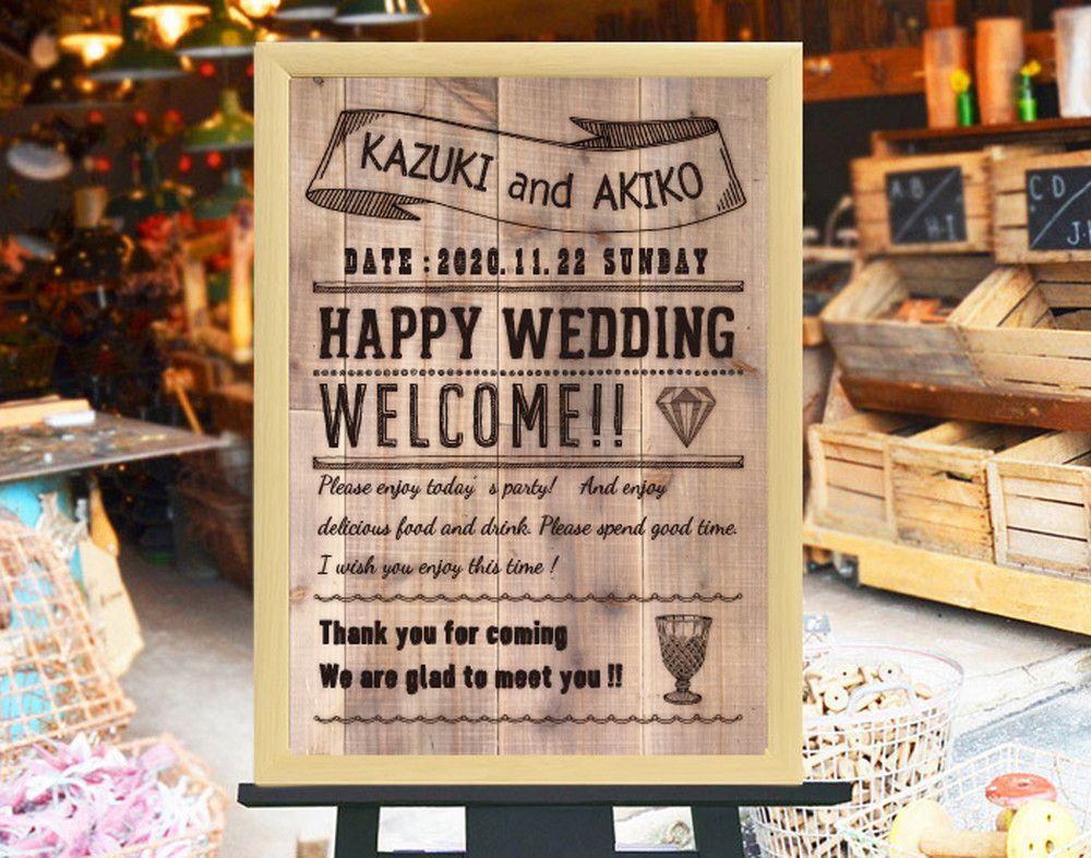 ヴィンテージを感じさせるウッド風ウェルカムボード