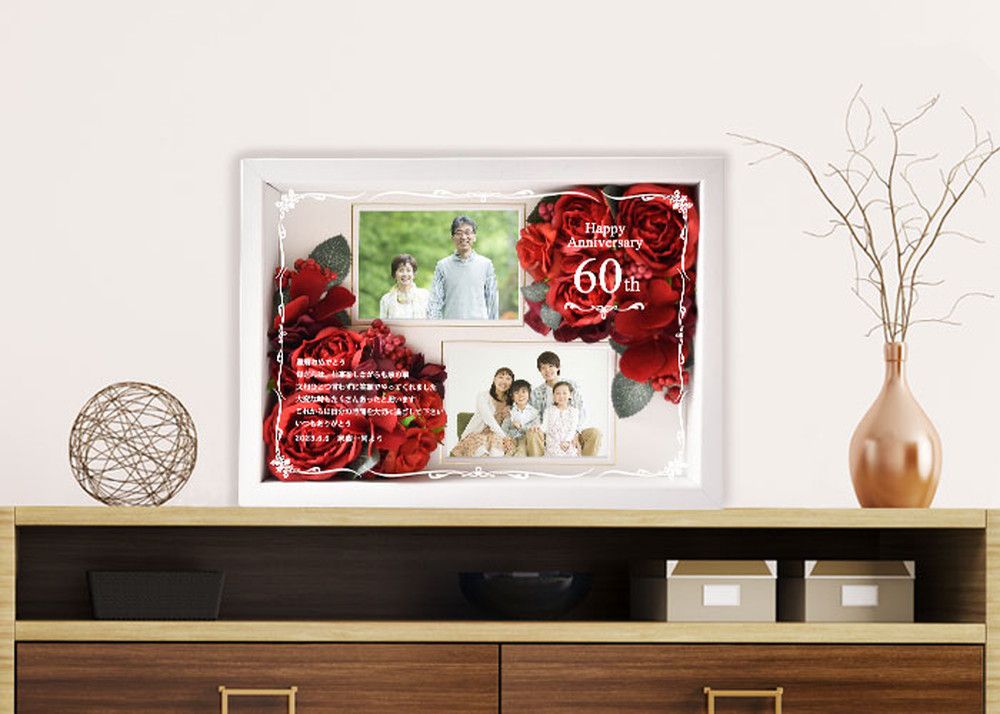 形に残る還暦祝いギフト 名入れフォトフレームフラワー
