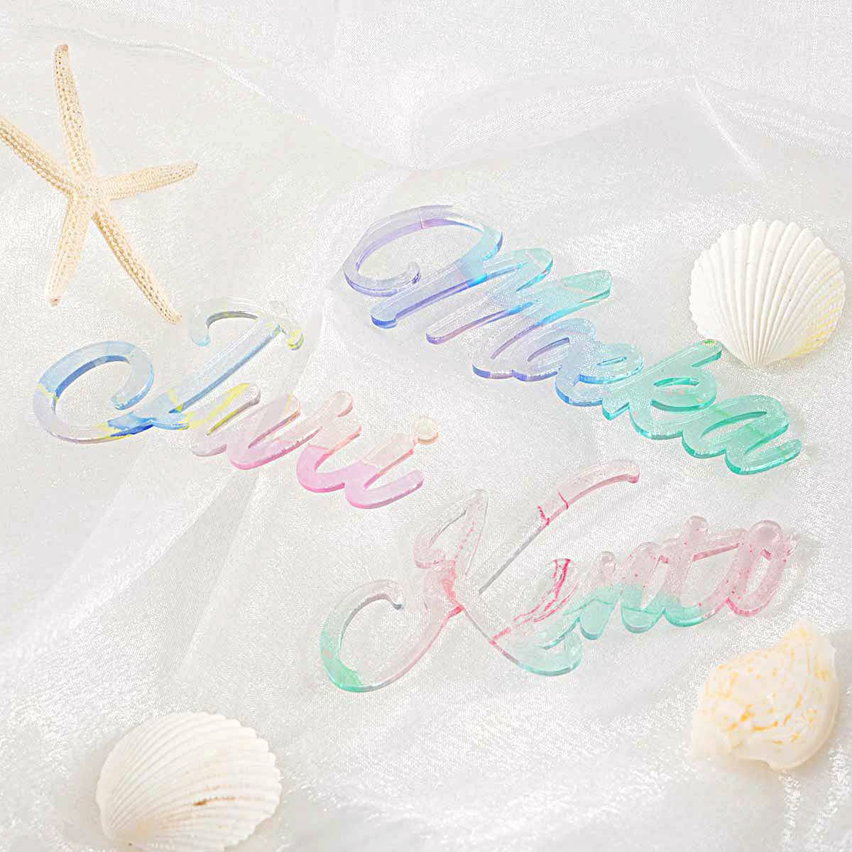 お名前の形にカットして作るアルコールインクアート風模様のアクリル席札