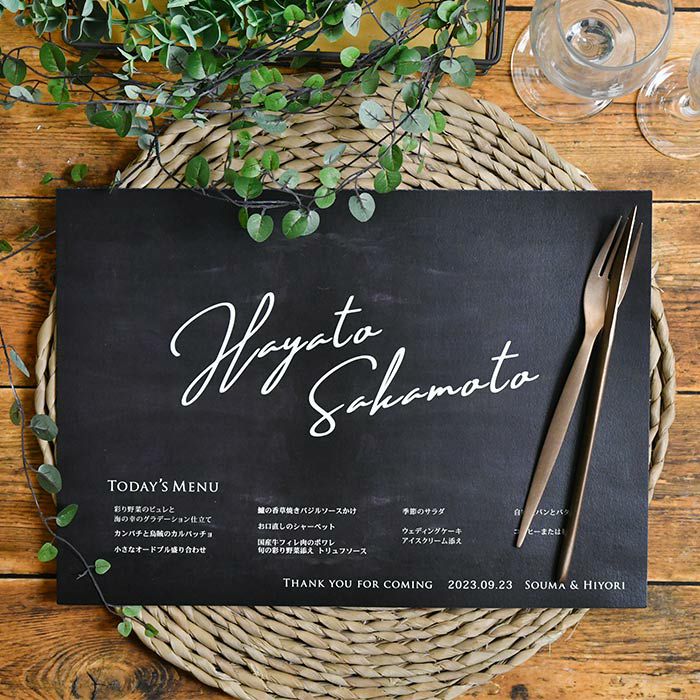 ペーパーランチョンマット席札デザインBメニュー付【黒板風】